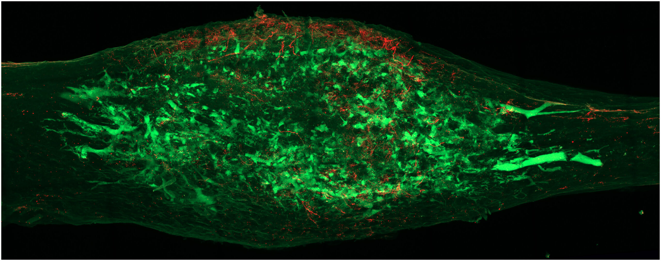 The foundation for this discovery was laid in 2019, when the laboratory identified two critical players in the early stages of injury: nerve growth factor (NGF) and its receptor, tropomyosin receptor kinase-A (TrkA). First discovered in the 1950s, NGF is a well-known protein that helps nerves grow and maintain themselves while also alerting the brain to pain. When a bone breaks, NGF and TrkA bind together like a key in a lock, initiating a surge in nerve growth at the fracture site.